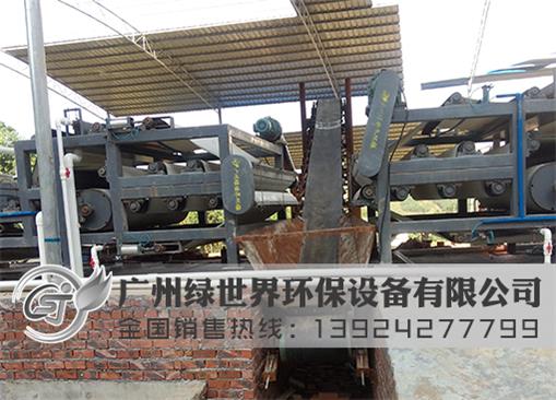 重力脫水區(qū)也可以說是高度濃縮區(qū),預(yù)處理后的污泥經(jīng)污泥泵輸送到混合器中與加入的絮凝劑混合,使污泥絮凝,然后流入布料斗均勻送入網(wǎng)帶,由此開始重力脫水,物料隨濾帶向前運行,游離太水在自重作用下通過濾帶流入接水槽。
