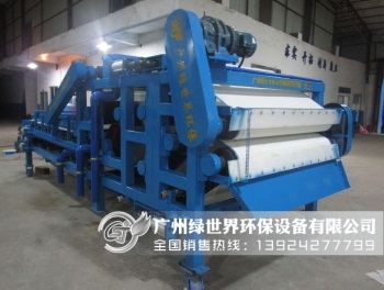 帶式壓濾機(jī)工作原理:經(jīng)過沉淀的污泥在與一定的濃度的絮凝劑在靜、動(dòng)態(tài)混合器中充分混合以后再污泥中的微小固體顆粒凝聚成體積較大的絮狀團(tuán)塊,同時(shí)分離出自由水,絮凝后的污泥被輸送大重力脫水是濾帶上,在重力的作用下自由水被分離,形成不流動(dòng)狀態(tài)的污泥。然后夾持在上下兩條網(wǎng)帶之間,經(jīng)過過預(yù)壓區(qū),低壓區(qū)和高壓區(qū)由小到大的擠壓力,剪切力的作用下,進(jìn)一步擠壓污泥,達(dá)到最大的程度的泥、水分離,最后形成濾餅排出。