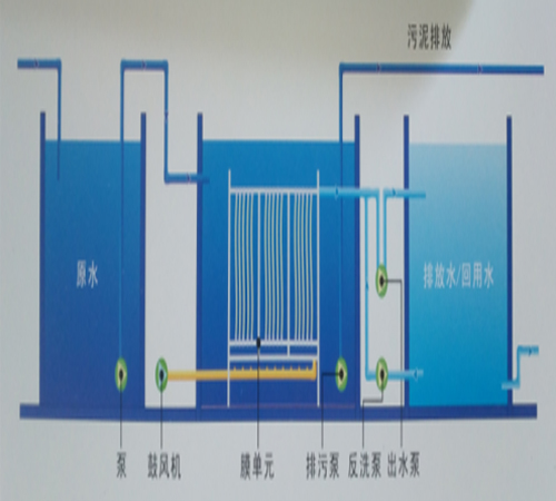 膜生物反應器(MBR)是高效膜分離技術與活性污泥法相結(jié)合的新型污水處理技術。利用膜組件進行的固液分離過程取代了傳統(tǒng)的二沉池沉降過程,極大的提高污水深度處理后的水質(zhì)。與傳統(tǒng)工藝相比,MBR可以使活性污泥具有較高的污泥濃度。經(jīng)MBR處理后的污水可以直接回用。出水水質(zhì)良好且穩(wěn)定,不僅能夠完全去除懸浮物,并且可以去除幾乎所有的細菌與病毒,產(chǎn)水濁度接近于零,對主要污染物的去除率很高,節(jié)流減排,實現(xiàn)了污水資源化。